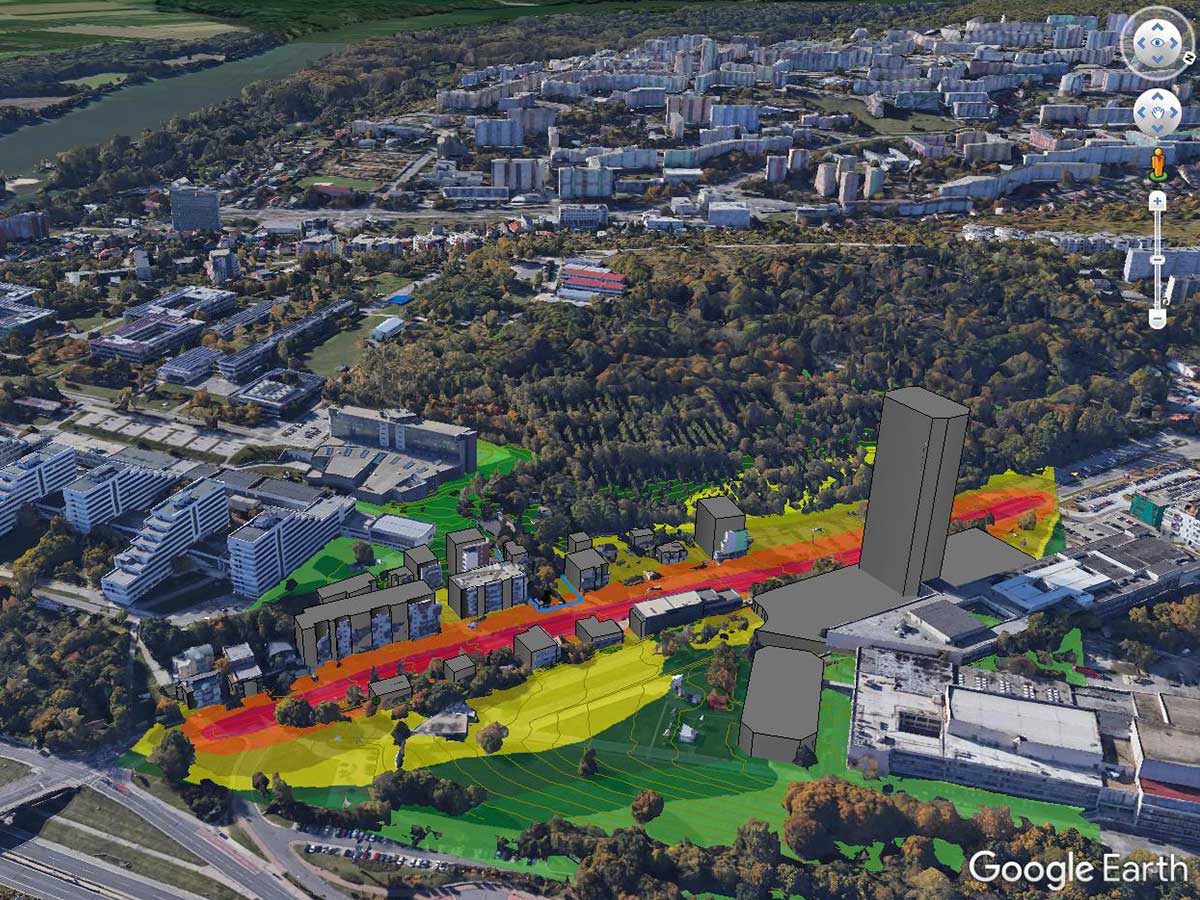 Výstupom býva zväčša rozsiahly dokument – hluková štúdia s podrobným spracovaním plánovaného zámeru v textovej a vizuálnej podobe. V prípade záujmu si môžete kompletné 3D modely s hlukovými mapami pozrieť aj vo virtuálnom glóbuse webovej aplikácie Google Earth.